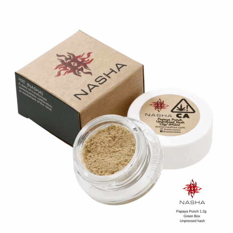 Nasha’s Green Label Hash is 1.2g of powdered hash packaged in a loose form straight from the drying process, that tends to melt and clump together if left at room temperature. It has a higher ratio of plant material to oil, similar to old-school hash. Commonly used to top bowls or added to joints for an added kick to your regular routine.