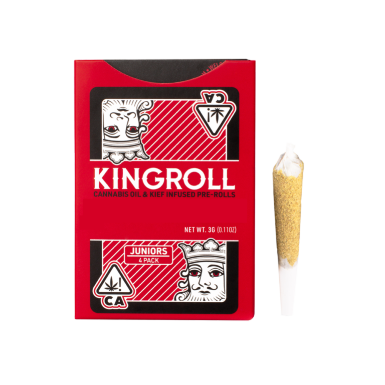 Introducing Kingroll Juniors, your new favorite multipack. Every box of Juniors contains 4 individual .75 gram kief coated pre-rolls, infused with Kingpen’s cannabis oil and combined with high-quality flower. Great for multiple clean, slow-burning seshes.